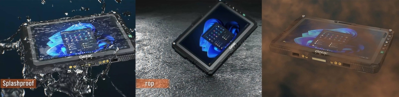 IP66 级别的防尘防水 是它的基本功。这意味着从1.8米的高度跌落、经受高压水柱的冲刷,或是暴露在沙尘环境中,都无法对它造成实质性伤害。所有接口都有严密的防水盖?;?,机身四角包裹着厚实的减震材料,以平板计算机模式通过高达1.8公尺的防摔测试,并能够在 -29°C 至 63°C (-20°F 至 145°F) 的操作温度中运作,在各种情况下都能安心使用。这种可靠性和扎实的用料,是消费级产品无法比拟的。