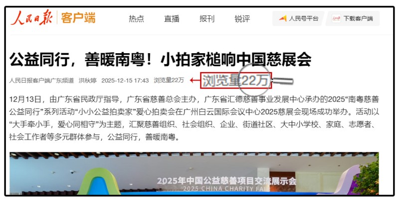 本次活动相关报道还登上人民日报平台,单篇文章浏览量达22万次(数据截至12月18日17点),社会影响力持续扩大。