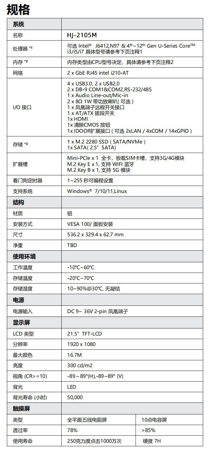 华颉科技工业平板电脑提供多样的规格尺寸,包括10.1寸、12.1寸、15寸、15.6寸、17寸、18.5寸、19寸、21.5寸、23.8寸、27寸等多种尺寸可选,以21.5寸规格为例
